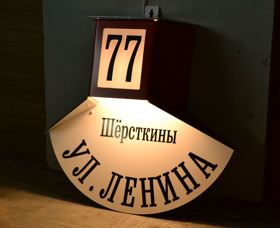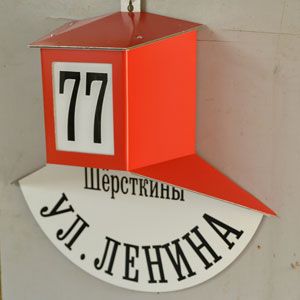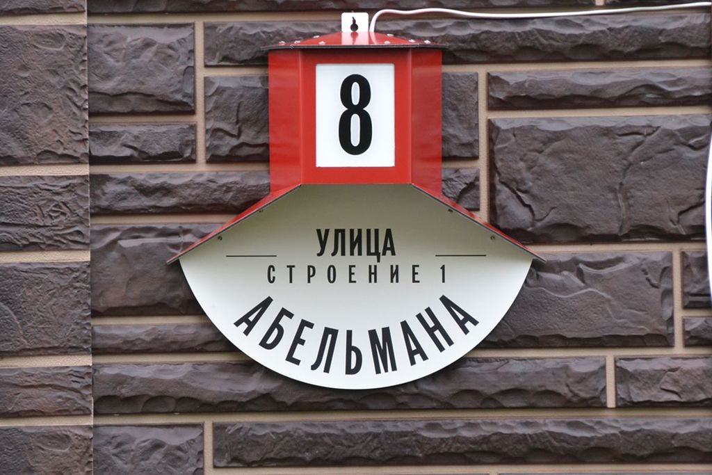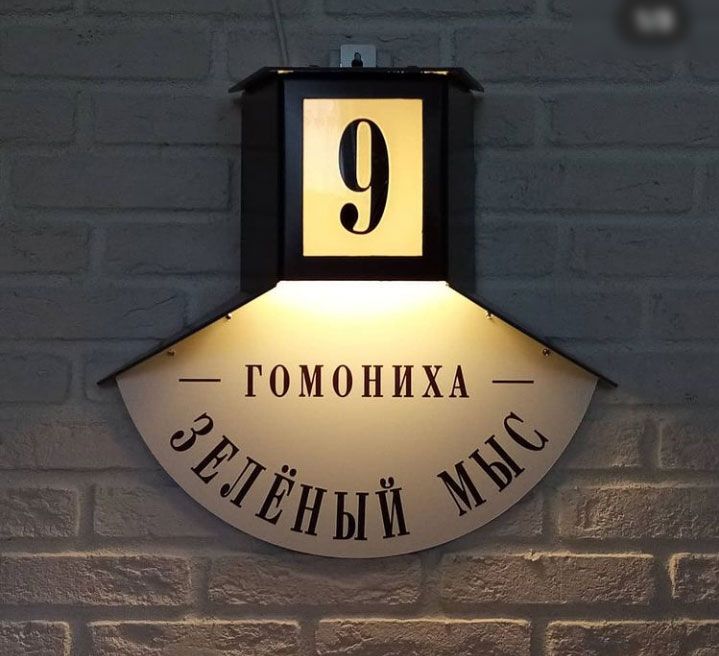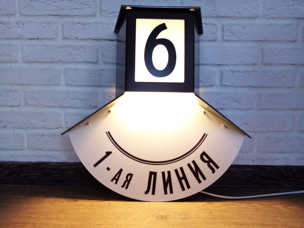 Наш знак выполнен из алюминиево-композитной плиты (АКП) толщиной 3 мм, детали выфрезерованы на чпу станке, надписи нанесены цветной пленкой. В качестве источника света установлена светодиодная лампа с малым цоколем E14 и мощностью 5W, использован керамический патрон. Для крепления знака к стене высверлены два скрытых отверстия, крепится с помощью обычных дюбель гвоздей. Табличка уже укомплектована своим проводом длиной 1 метр для подключения к сети 220 В. Для автоматического включения подсветки знака в ночное время необходимо использовать фотореле, которое можно приобрести в любом магазине, торгующем элетротоварами или можете включить в стоимость заказа и мы сделаем его встроенным.